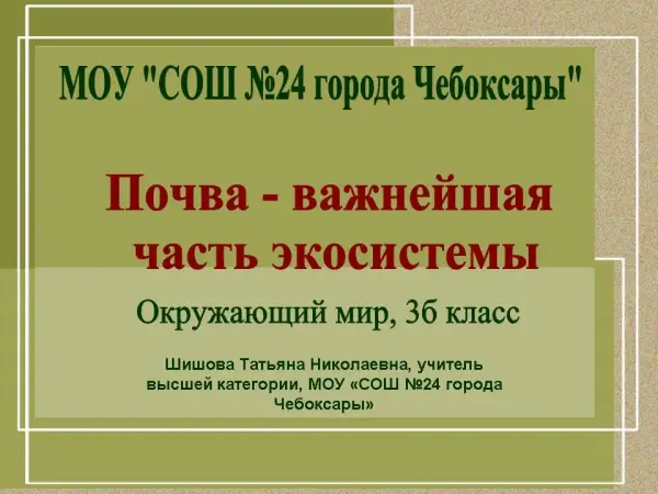 На уроке формируется представление учащихся о почве как важнейшей части экосистемы. Цель урока – выявить совместно с детьми основные свойства почвы, в процессе опытов установить состав почвы, узнать о преобладающих почвах родного края.