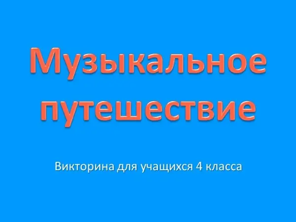 Викторина создана в формате телевизионной передачи «Своя игра». Содержание викторины построено на учебном материале по музыке для учащихся 4-го класса по программе В.В.Алеева, Т.Н.Кичак. В неё включены вопросы, связанные с народной и профессиональной музыкой России, стран Западной Европы и дальнего зарубежья. Викторина проводится по окончании учебного года и позволяет обобщить изученный материал в игровой форме. Для проведения викторины создана презентация.