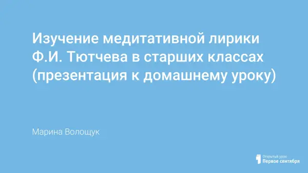 В статье рассматривается специфика изучения медитативной лирики в старших классах, возможности использования ее в учебно-воспитательном процессе, в организации личностного подхода к пониманию художественных текстов, в решении проблем философского отношения к лирическому произведению, что способствует духовному, творческому развитию человека.