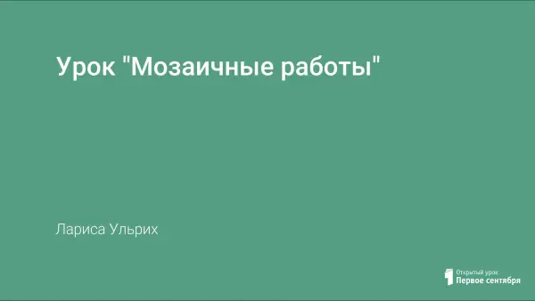 Учащиеся знакомятся с технологией выполнения мозаичных работ и навыками составления орнамента. В ходе урока раскрывается понятие мозаики, формируются знания о ее видах, технологии выполнения и применения.