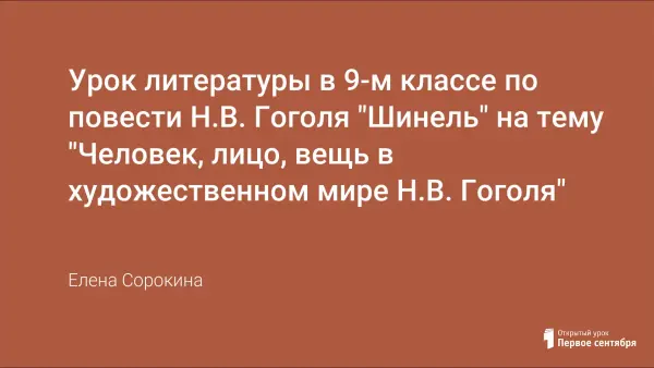 В основу своей работы ставлю формирование и развитие личности. В 9-м классе мы работаем над общей темой «Автор – образ – читатель» по программе А.Г. Кутузова. Продолжаем учиться интерпретации произведений, стараясь подняться ещё на одну трудную ступеньку «к высокому званию настоящего читателя, способного разгадать послание создателя произведения к своим читателям-соавторам. Причем не только современникам, но и потомкам». Предлагаю урок-исследование по повести Н.В. Гоголя «Шинель».
