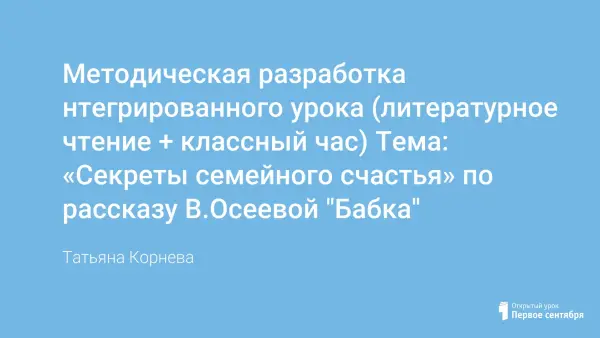 Наиболее подходящим периодом формирования духовно-нравственных семейных ценностей является дошкольный и младший школьный возраст, когда человек только начинает формироваться как личность. Автор старается воспитывать в своих учениках бережное отношение к семье, её традициям и устоям. Цель урока: сформировать понимание важности семейных ценностей в жизни человека.