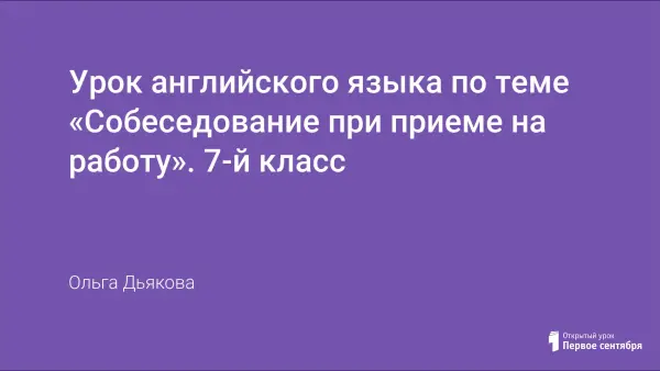 Урок английского языка по теме «Собеседование при приеме на работу». 7-й класс