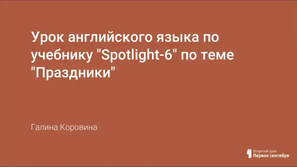 Заключительный урок по учебнику «Spotlight-6» по теме «Праздники». Впереди – Новый год, этой теме уделено особое внимание.