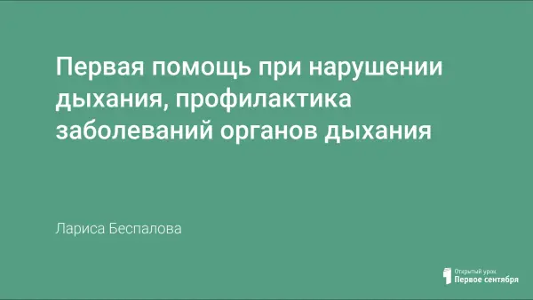 На уроке учащиеся знакомятся с гигиеной воздушной среды, возможными нарушениями дыхания, узнают приемы оказания первой помощи при нарушении дыхания, показания к искусственному дыханию.