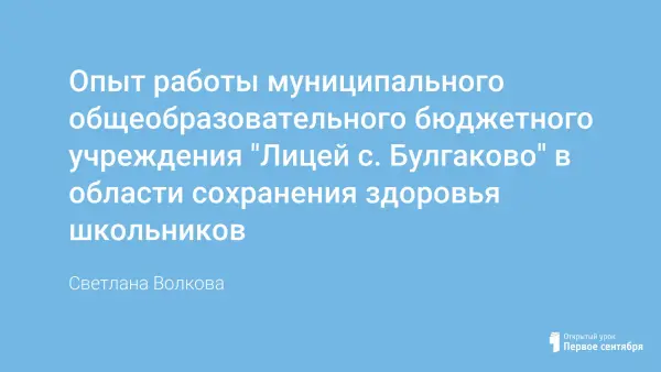 С целью формирования здоровой среды обучения и воспитания в МОБУ лицей с. Булгаково разработан модульный социально-педагогический проект «Здоровая школа», рассчитанный на период с 2008 до 2014 года. Наработанные методики легли в основу программы мониторинга состояния физического здоровья школьников.