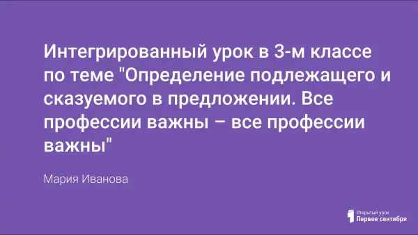 Урок имеет профориентационное направление. Через игру, занимательный материал дети узнают о разных профессиях и одновременно закрепляют знания о главных членах предложения и частях речи.