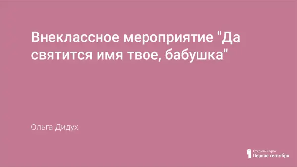 Работа представляет собой внеклассное мероприятие в начальных классах, посвященное бабушкам, и направлена на совместное сотрудничество семьи и школы, а также развитие творческих способностей детей. Цель занятия - показать важность присутствия бабушки в семье, привитие чувства гордости и заботы о ней.