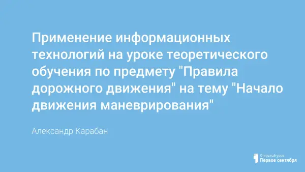 Материал представляет готовый план-конспект для проведения урока теоретического обучения по предмету "Правила дорожного движения" на тему "Начало движения маневрирования". При изложении данного материала используется мультимедийное оборудование, что способствует лучшему восприятию информации по данной теме и более успешному закреплению материала.