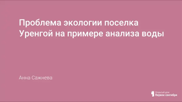 В статье рассмотрена экологическая проблема поселка Уренгой на примере анализа воды. Изучен принцип работы станции водоочистки поселка. Рассмотрены источники загрязнения подземных вод и предложены пути решения данной экологической проблемы.