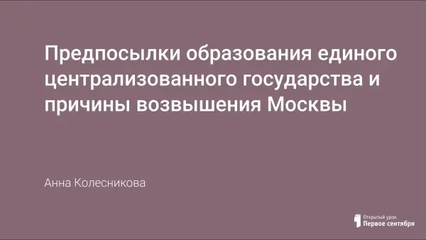 На уроке предполагается рассмотреть положение русских земель на рубеже XIII–XIV вв. Проанализировать возможные альтернативы существования русских земель под контролем Золотой Орды или Литовского княжества и их последствия. Выявить важнейшие предпосылки централизации русских земель и определить основные преимущества Москвы как политического центра перед другими крупными русскими городами.