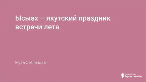 В своей работе автор рассказывает о национальном празднике якутов – Ысыах. Национальный праздник Ысыах – это уникальное духовное богатство народа Саха, символизирующее торжество жизни и природы на земле Олонхо. Это праздник, который отражает традиционную картину мира и мировоззрение саха, праздник, которого все с нетерпением ждут весь год. В нем ярко проявляются весь национальный колорит и фольклор народа: язык, мифология, танцы, музыка, обряды и обычаи, национальная одежда, пища, праздничная утварь, ремесла и архитектура, народная философия.