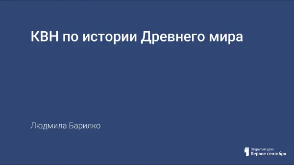 КВН проводится с целью систематизации знаний по истории Древнего мира за весь курс обучения. В ходе КВН учащиеся привлекаются к различным видам деятельности: «Историческое путешествие», объяснение крылатых выражений, анализ незнакомого исторического текста.