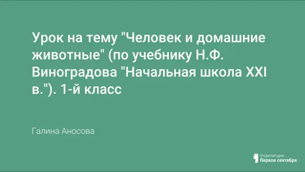 Цели урока: научить определять по присущим признакам домашних животных; уточнить признаки деления животных на домашних и диких; расширить представление о роли домашних животных в жизни человека; познакомить с профессиями людей, которые ухаживают за домашними животными; воспитывать чувство ответственности за жизнь животных; развивать коммуникативные навыки.