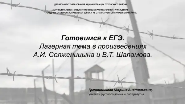 Лагерная темы в произведениях А.И.Солженицына и В.Т.Шаламова. Подготовка к ЕГЭ