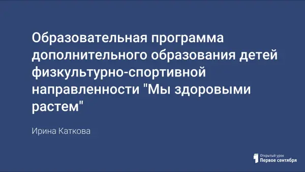 Образовательная программа физкультурно-спортивной направленности призвана помочь компенсировать то или иное отставание детей и заложить основу знаний в области физической культуры и валеологии. Теоретический материал учит детей быть здоровыми посредством физических упражнений, правильного питания, соблюдения режима дня. Практический материал ориентирует обучающихся на самостоятельное выполнение упражнений. В методической части заложены психологические и организационные условия, необходимые для реализации программы.