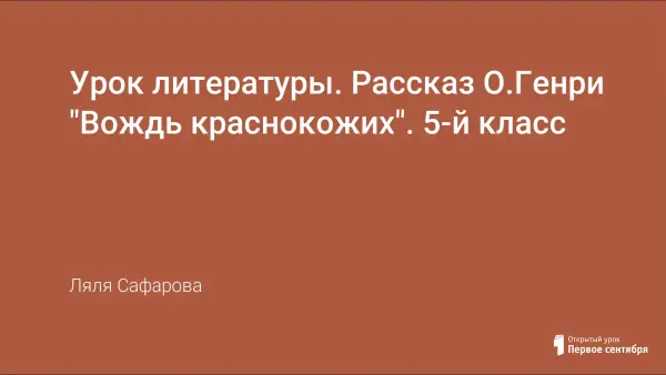 Урок проводится после знакомства учащихся с юмористическими рассказами А.П. Чехова («Лошадиная фамилия», «Толстый и тонкий», «Пересолил»). В первой части занятия школьники вспоминают те художественные приемы, которые использует Чехов в своих ранних произведениях. Основная часть урока посвящена изучению некоторых страниц жизни современника Чехова, американского писателя-юмориста О. Генри и анализу его рассказа «Вождь краснокожих».
