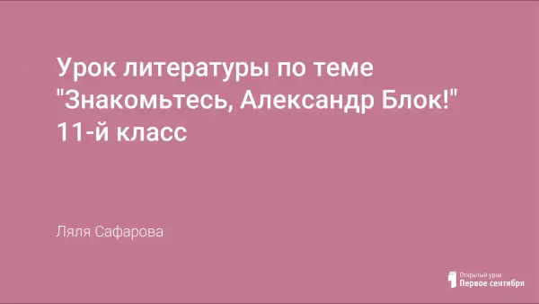 Урок проводится в форме викторины в качестве первого ознакомительного урока по творчеству А.Блока. Учащиеся знакомятся с семьей поэта, его современниками и музами, звучат стихи Блока, в презентации показаны места, дорогие сердцу поэта: Шахматово, Боблово, Петербург. Т.о., первое знакомство одиннадцатиклассников с поэзией Блока должно стать неформальным и запоминающимся, что в свою очередь должно повлиять на восприятие учащимися творческого наследия поэта.