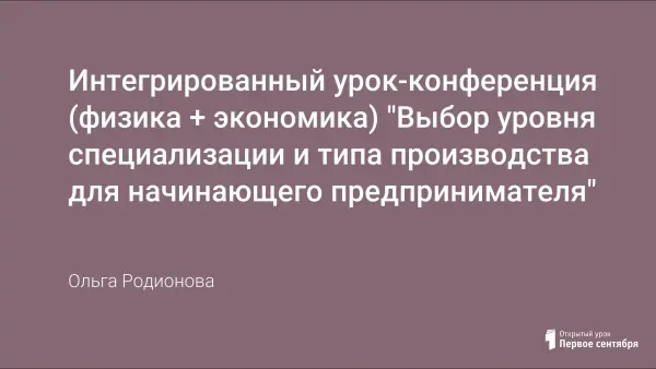 Интегрированный урок-конференция (физика + экономика) "Выбор уровня специализации и типа производства для начинающего предпринимателя"