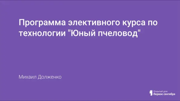 Целью является развитие у школьников интереса к пчеловодству; воспитание любви к природе; формирование знаний по биологии пчел, их разведению и содержанию; развитие самостоятельности в процессе изучения материала; формирование элементарных навыков в работе с пчелами. Программа рассчитана на учащихся 7–8-х классов. В основу ее положено сочетание теоретических и практических занятий. Программа составлена в соответствии с сезонностью выполняемых работ.