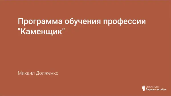 Цель профессионального обучения учащихся X—XI-х классов по программе: формирование на широкой политехнической основе знаний, умений и навыков по профессии «каменщик». Содержание программы основано на квалификационной характеристике каменщика II-го разряда согласно ЕТКС (выпуск 3, раздел «Строительные, монтажные и ремонтно-строительные работы») с учетом преемственности обучения учащихся VIII—IX-х классов по профилю «Строительно-монтажное производство».
