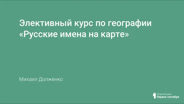 В современной кризисной ситуации, охватившей все сферы общественной жизни, география видит выход в восстановлении утраченной духовности. Одна из задач школы и уроков географии в том числе – становление «Русской школы», возрождение русской культуры. Спецкурс «Русские имена на карте» хорошо сочетается с курсом «Природа России», развивает знания восьмиклассников о природе нашей страны, быте населяющих ее народов, вооружает новыми знаниями об истории исследования России.