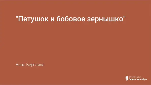 На уроке литературного чтения, проводимого в 1-м классе, учитель знакомит детей с содержанием русской народной сказки "Петушок и бобовое зёрнышко".
