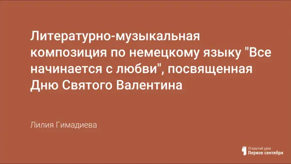 Внеклассное мероприятие по немецкому языку для учащихся общеобразовательной школы, направленное на знакомство с традициями празднования Дня Святого Валентина. Мероприятие нацелено на повышение мотивации учеников к изучению немецкого языка. В мероприятии использованы стихотворения о любви немецких, русских, татарских поэтов.