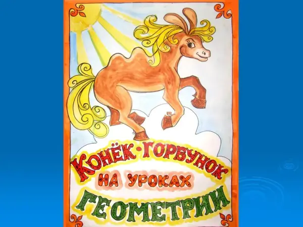 Интегрированный урок геометрии и литературы, который не только проверяет умения детей выполнять различные геометрические построения, но и знакомит учащихся со сказкой Ершова «Конек-горбунок». Яркая, красочная презентация (рисунки выполнены от руки и оцифрованы) воспитывает чувство прекрасного и формирует у ребят положительные эмоции, связанные с уроком математики.