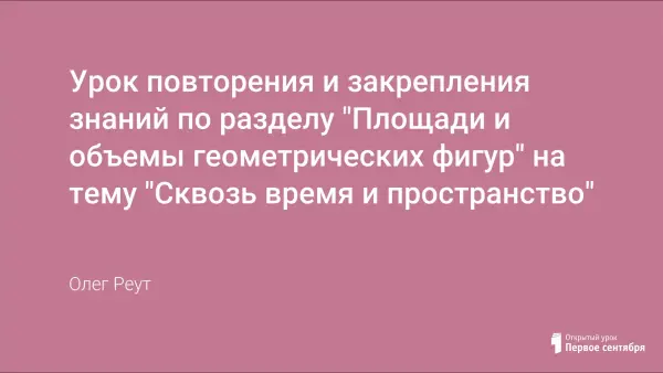 Урок нацелен на повторение и закрепление знаний по разделу «Площади и объемы геометрических фигур». Урок проходит в форме путешествия, класс становится разведывательным кораблем, который отправляется в пространство сказок, мифов, легенд. Ребята встречаются с Али-Бабой, Зевсом, Карлсоном, Иваном-Царевичем, которым они помогают узнать о различных геометрических фигурах, мерах длины и площади.