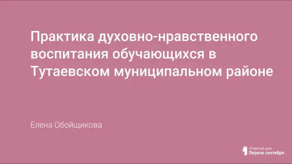 В статье представлен опыт работы по духовно-нравственному воспитанию детей в Тутаевском муниципальном районе в рамках реализации муниципальной целевой программы «Духовно-нравственное воспитание и просвещение населения Тутаевского муниципального района».