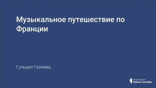 Урок проводится в рамках темы «Между музыкой моего народа и музыкой народов разных стран нет не переходимых границ». В сценарии урока отражены исторические аспекты музыкальной культуры Франции. Путешествие происходит в географическом и временном пространстве. Знакомство детей с музыкой Франции XVII–XVIII вв. происходит посредством просмотра убранства замков той эпохи; слушания, разучивания песен; разучивания и исполнения шага Менуэта.