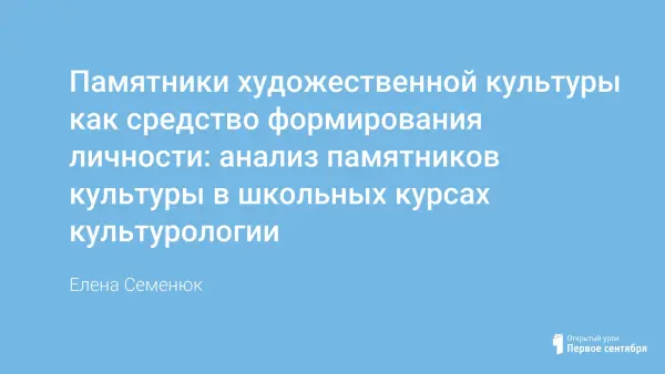 Памятники художественной культуры как средство формирования личности: анализ памятников культуры в школьных курсах культурологии