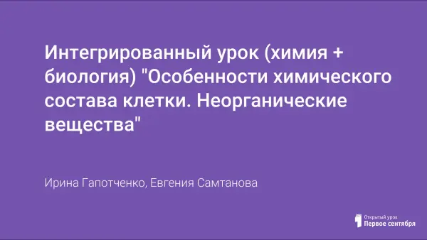 Интегрированный урок (химия + биология) "Особенности химического состава клетки. Неорганические вещества"