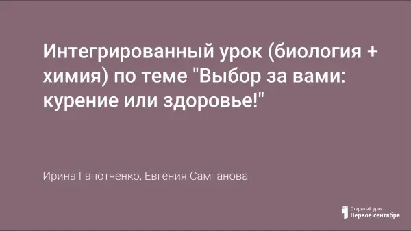 Интегрированный урок (биология + химия) по теме "Выбор за вами: курение или здоровье!"