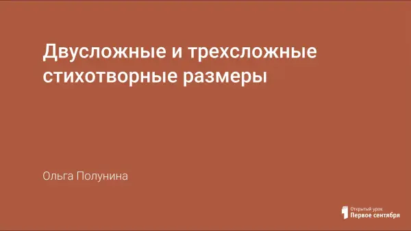 Цели урока: формирование знаний стихотворных размерах, о роли двусложных и трёхсложных размеров в стихотворном тексте; развитие умения слышать ритм и представлять поэтические образы; воспитание любви к родному языку, чувства гордости за его богатство и многообразие.