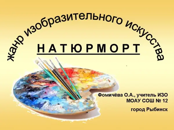 На уроке дети изучают жанр изобразительного искусства «натюрморт». Урок базируется на ранее полученных детьми знаниях. Учащиеся расширяют теоретические знания по истории развития жанра, знакомятся с мастерами натюрморта, определяют типы натюрморта. Учитель предлагает сочетание разнообразных форм работы: игровых, индивидуальных, парных, фронтальных. Важной составляющей урока выступает тест-презентация по теме.