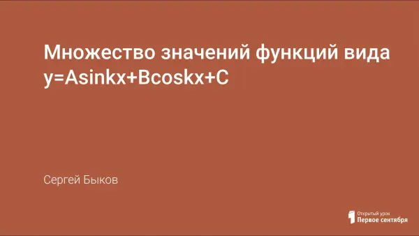 Для функций вида у=Asinkx+Bcoskx+C вопрос нахождения их множества значений является нетривиальным. Рассмотрим несколько примеров решения задач.