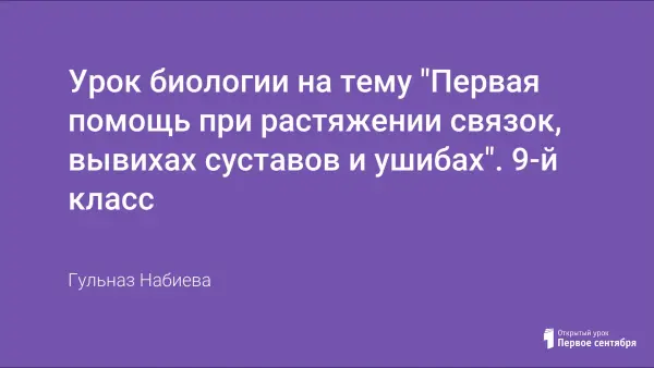 Урок расширяет представления об опорно-двигательной системе человека и способах оказания первой доврачебной помощи при растяжении связок, вывихах суставов и ушибах.