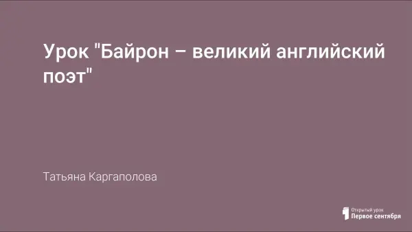 Урок формирует представления учащихся о жизни и творчестве великого английского поэта Байрона, знакомит со стихами, переводами на русский язык, отрывком из поэмы «Паломничество Чайльд-Гарольда».