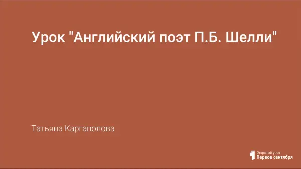 Цель урока: формировать представления учащихся о жизни и деятельности английского поэта П.Б. Шелли.