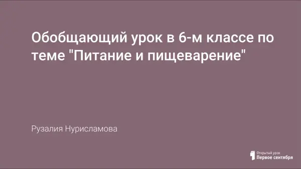 Урок повторяет и закрепляет знания учащихся по теме «Питание и пищеварение» через вовлечение их в активную деятельность на уроке. В ходе урока также проводится обобщение знаний. Урок позволяет проверить несколько компонентов: знание теории, умение восстанавливать схемы, обобщать и выделять существенные признаки. Урок также формирует навыки общения, сотрудничества, коллективизма.