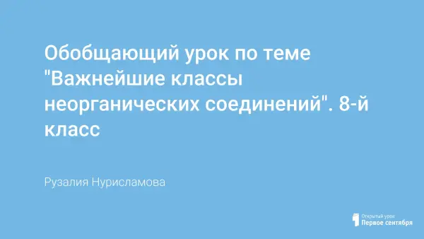 Цель урока: систематизация знаний учащихся о классах неорганических соединений и подготовка к контрольной работе. На уроке учащиеся вспоминают и используют терминологию, проводят небольшую исследовательскую работу.