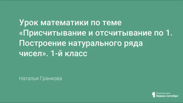 Урок математики в 1-м классе (УМК «Гармония»). Цель урока: формирование представления у детей понятия о натуральном ряде однозначных чисел, который используется для счета, разъяснение предметного смысла построения этого ряда.