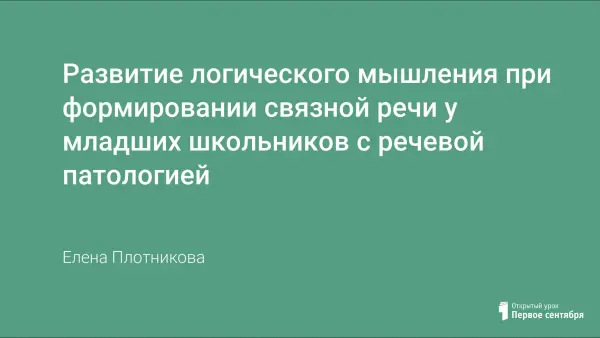 У детей с речевой патологией логическое мышление начинает формироваться значительно позже, чем у их сверстников. Систематическая тренировка учащихся в связывании суждений на уровне слова, фразы, текста, в словесном выражении причинно-следственных зависимостей учит быстрее и качественнее передавать содержание текста, объединять в логической последовательности несколько предложений, рассуждать.