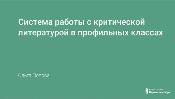 В статье говорится о роли и значении литературной критики в школьном преподавании литературы.