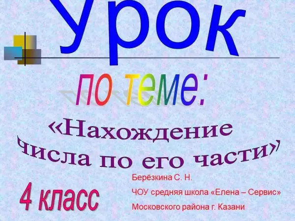 К уроку математики в 4-м классе по теме "Нахождение числа по его части" предлагается презентация.