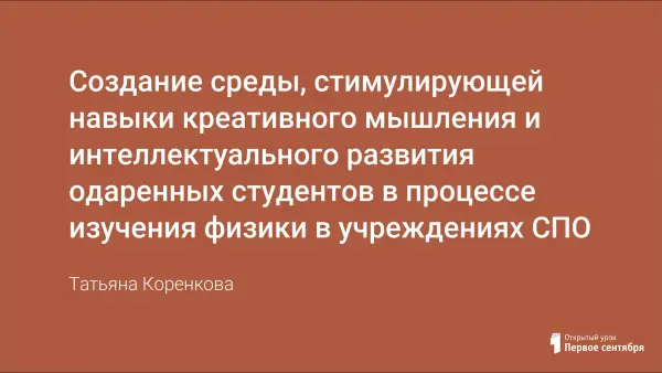 В статье рассматриваются технологии, позволяющие создавать в процессе изучения дисциплины “физика” среду, являющуюся катализатором развития креативного мышления. Показаны возможности применения и создания инфографичных, фрактальных и арт-объектов с целью повышения эффективности образовательного процесса, развития метапредметных компетенций обучаемых, преимущества метода интеллект-карт, фрактального описания процессов для визуализации процессов мышления.