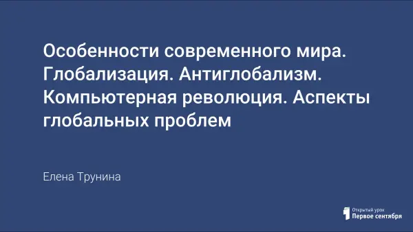 В конспекте урока представлены основные характеристики и элементы процесса глобализации, которые раскрываются с помощью информационных технологий, графических приемов организации материала, интерактивных методов обучения, стратегии ЗУХ (знал, узнал, хочу узнать).