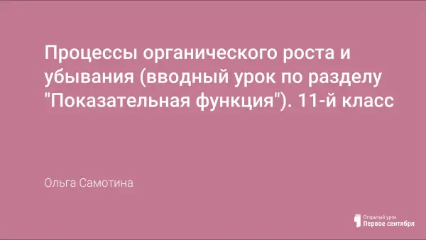 Цель урока: на примерах органического роста и убывания отдельных процессов показать необходимость введения и дальнейшего изучения показательной функции и познакомить с планом работы по теме "Показательная функция".